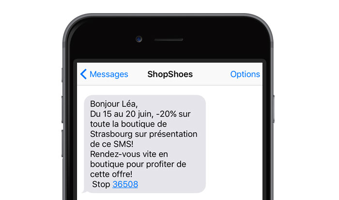Ce type de publicité apparaît sur les smartphones et les tablettes. Les entreprises peuvent faire de la publicité par SMS, après l'utilisateur donne son consentement, ou par l'affichage d'annonces dans le navigateur optimisé pour les appareils mobiles. Si vous gérez un magasin de chaussures, les annonces mobiles sont particulièrement bonnes pour la publicité auprès du public local avec les offres spéciales du moment. Vous pouvez créer des campagnes SMS en un rien de temps avec SendPulse. Notez bien que leur taux d'ouverture est extrêmement élevé : jusqu'à 98%.