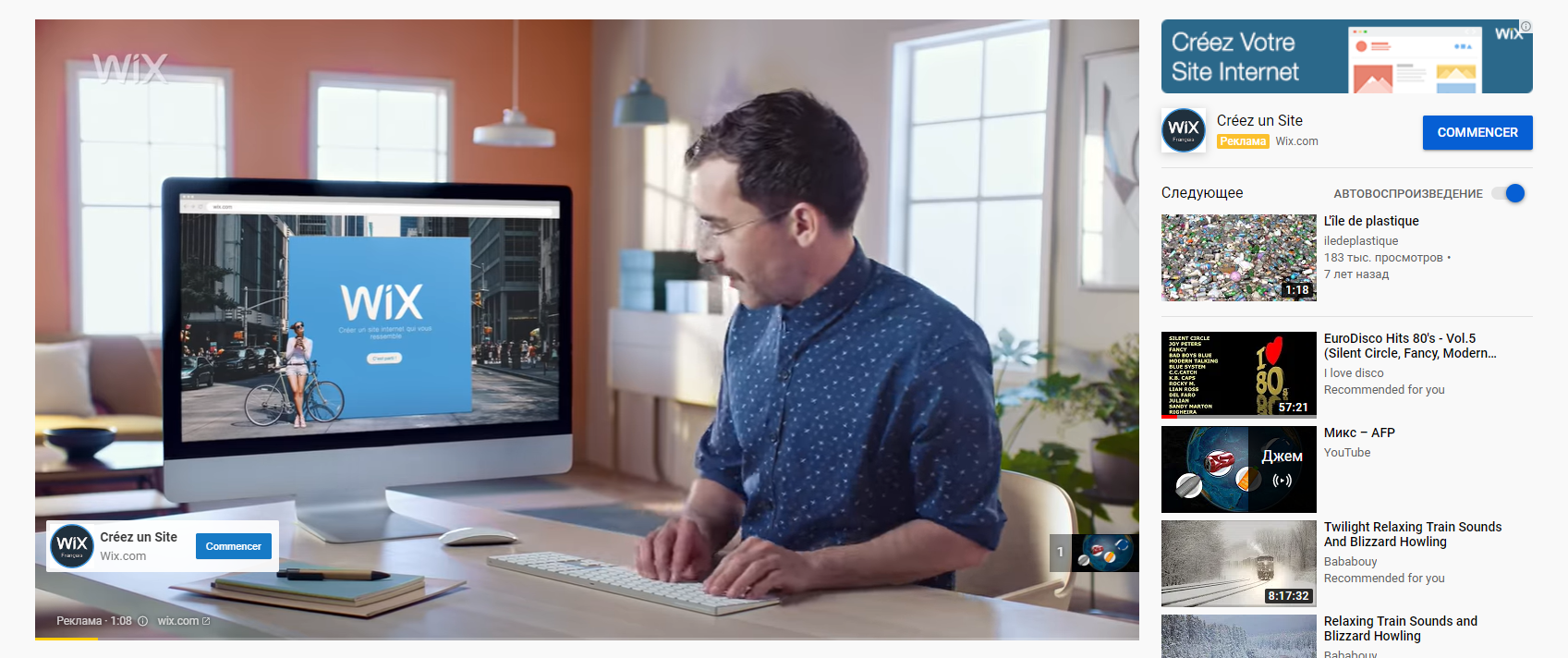 Comme son nom l'indique, ces annonces sont au format vidéo et placées sur des services comme YouTube, Vimeo, DailyMotion et Vine. Il s'agit d'un type de publicité coûteux, mais aussi efficace, car les vidéos de haute qualité peuvent devenir virales. Une campagne de publicité vidéo intitulée « Créez un site » attire les gens à un constructeur de sites bien connu et pratique.