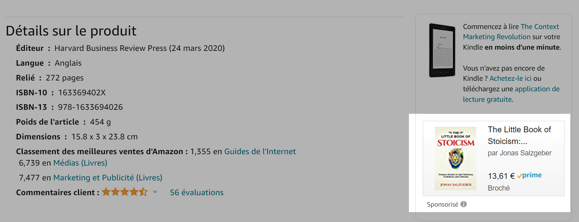 Cette entreprise utilise le marketing contextuel pour promouvoir des produits similaires à ceux que vous recherchez. Une fois que vous avez ouvert la page du produit sur leur site Web, il y a une carte sponsorisée avec des suggestions à gauche de l'écran. Vous trouverez ci-dessous un exemple d'une telle promotion.