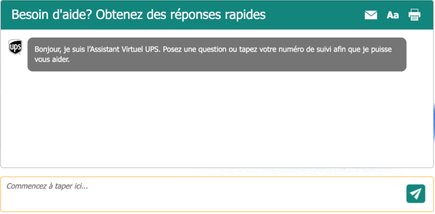 Sur son site, UPS propose un assistant virtuel qui permet par exemple de se renseigner en temps réel sur le suivi d’un colis.