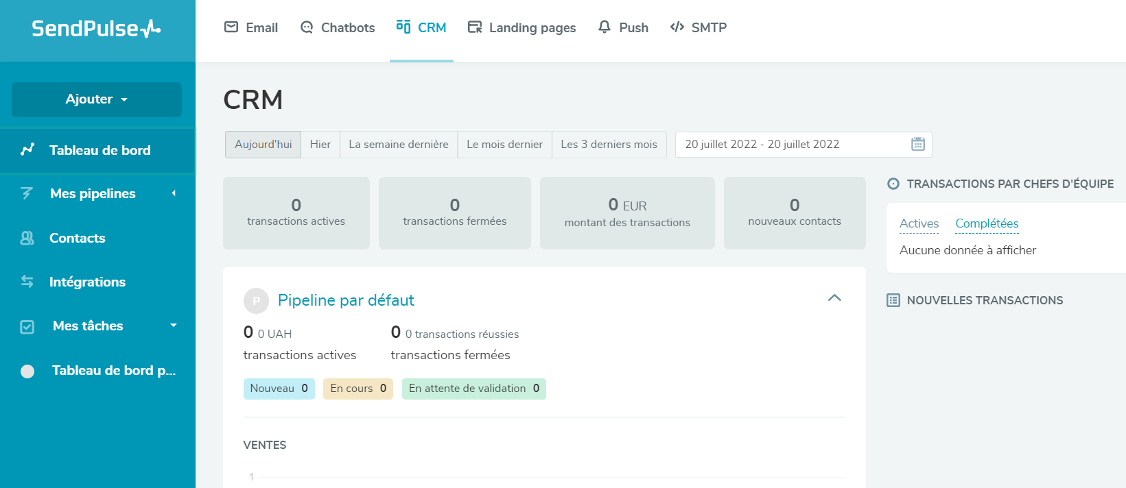 - Intégrations avec d'autres produits. Pour offrir des expériences plus cohérentes et automatiser vos processus de vente, vous pouvez intégrer SendPulse CRM avec d'autres produits. Lancez des campagnes par email, répondez aux questions fréquemment posées avec des chatbots, utilisez les notifications SMS et push Web pour interagir avec les clients via différents canaux et répondre aux besoins de différents segments d'audience.