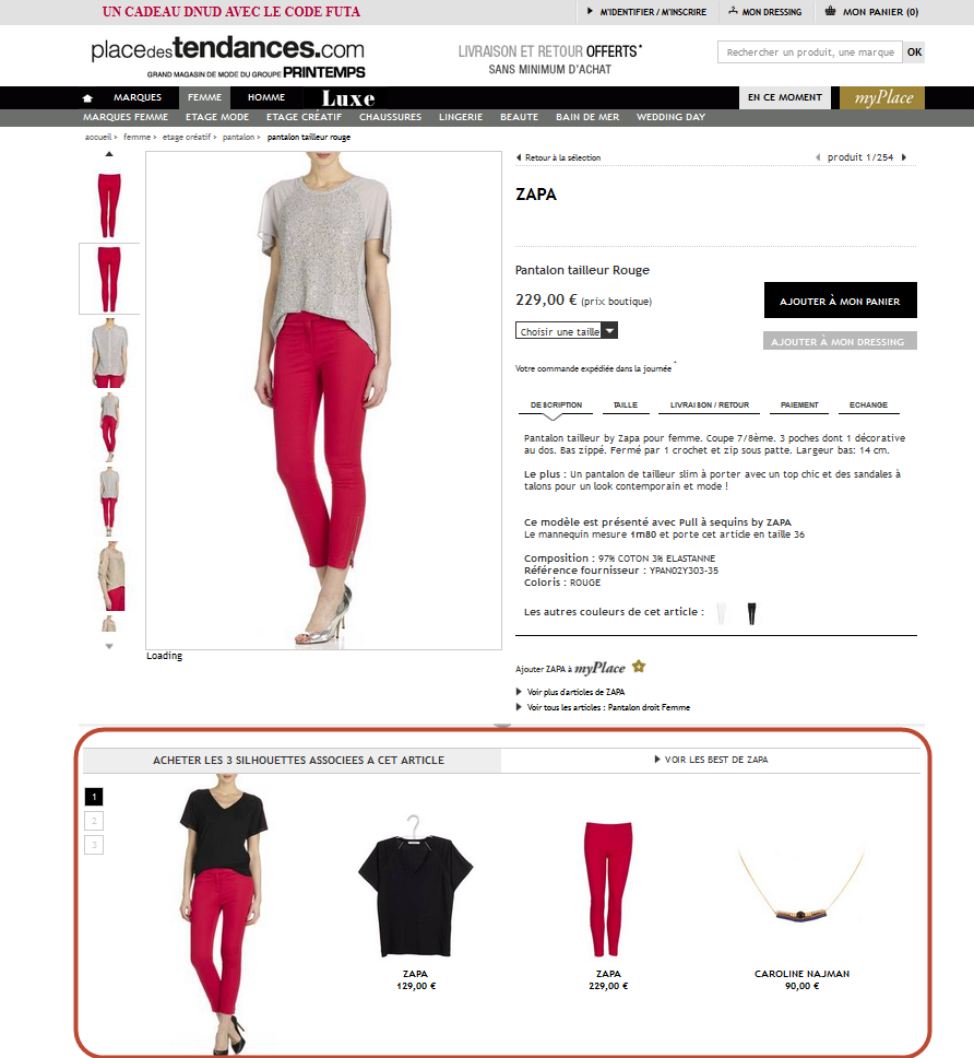 La vente croisée est la méthode préférée des détaillants de vêtements. L'astuce principale ici est de proposer des articles qui se complètent, comme une chemise et un collier à un pantalon. Voici un exemple de Zapa. La marque vous montre un look dans son ensemble plutôt qu'un ensemble de vêtements similaires.