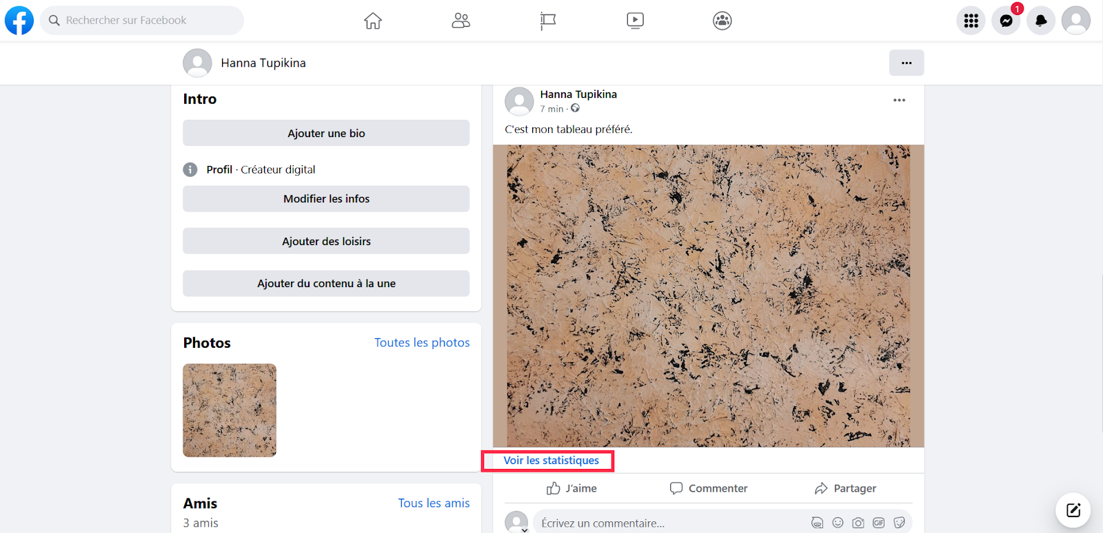 Le moyen le plus simple de connaître le reach de vos publications organiques est d’appuyer sur «Voir les statistiques » juste en dessous de la publication :