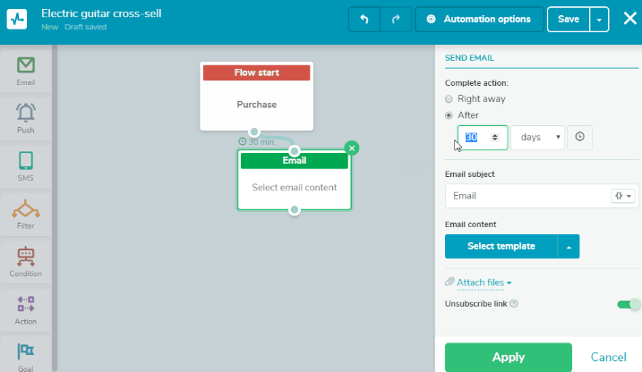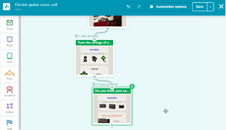 Pour augmenter les chances de succès du suivi, vous devriez exploiter pleinement le potentiel d'Automation 360 en ajoutant d'autres emails sur la base de différentes conditions.