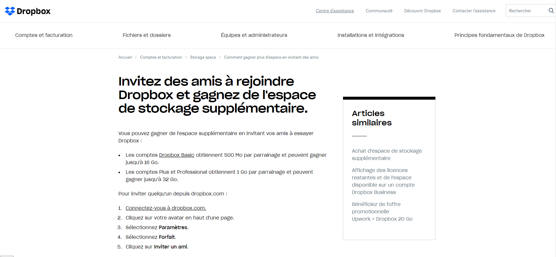 Comme vous pouvez le voir sur l'image ci-dessous, la société offre à ses utilisateurs plus de 500 Mo d'espace de stockage supplémentaire en échange de chaque ami invité au service. Immédiatement, cette décision a aidé Dropbox à atteindre une augmentation de 60 % du nombre d'utilisateurs.