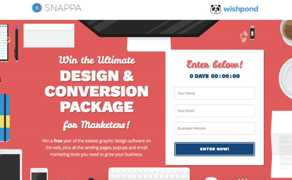 Snappa a choisi une stratégie de génération de leads basée sur la possibilité de gagner un abonnement annuel à un ensemble d’outils marketing :