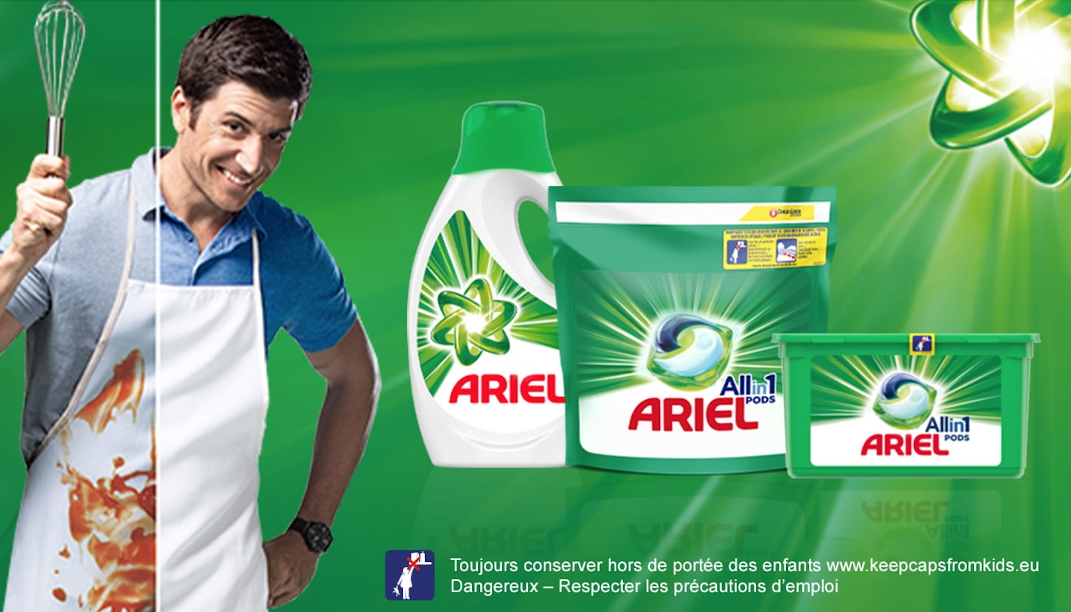 Comme Ariel, les marques de lessive utilisent bien souvent des stratégies de publicité persuasive en mettant en avant l’efficacité de leur produit grâce à la démonstration.