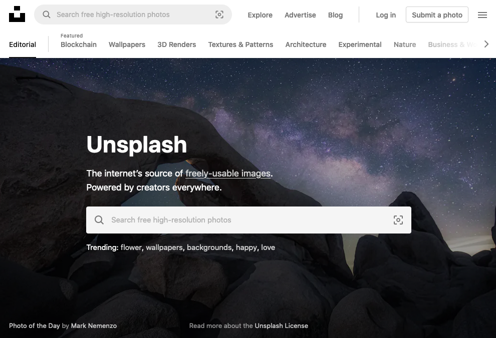 Pour illustrer l'introduction d'un nouveau produit sur le marché sur un exemple, nous avons décidé de citer le cas d'un site Web bien connu des photos gratuites - Unsplash.