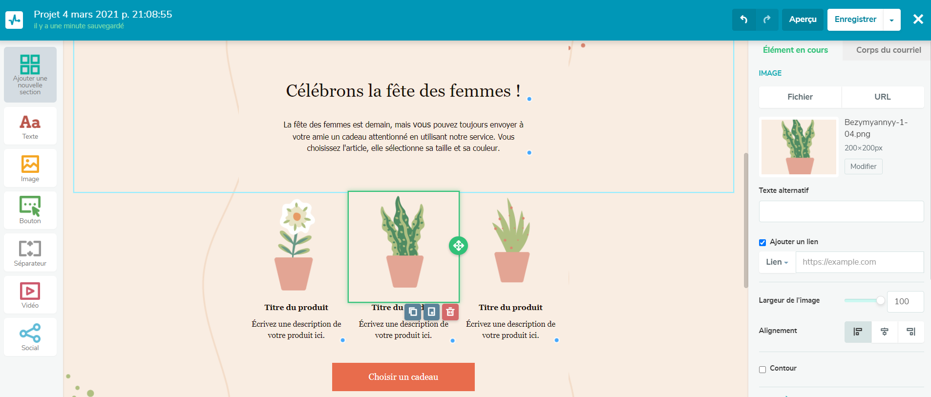 Dessinez un email personnalisé dans l’éditeur de SendPulse. Tous nos modèles de lettres permettent de créer des emails responsives.