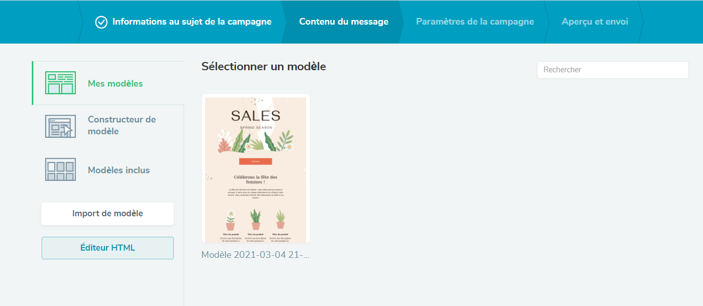 Importez votre email déjà créé ou choisir un email depuis la base de modèles de SendPulse.