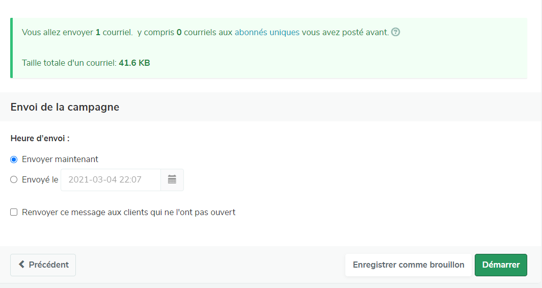 Prenez un moment pour vérifier attentivement toutes les informations de votre campagne pour ne pas l’envoyer en vain.