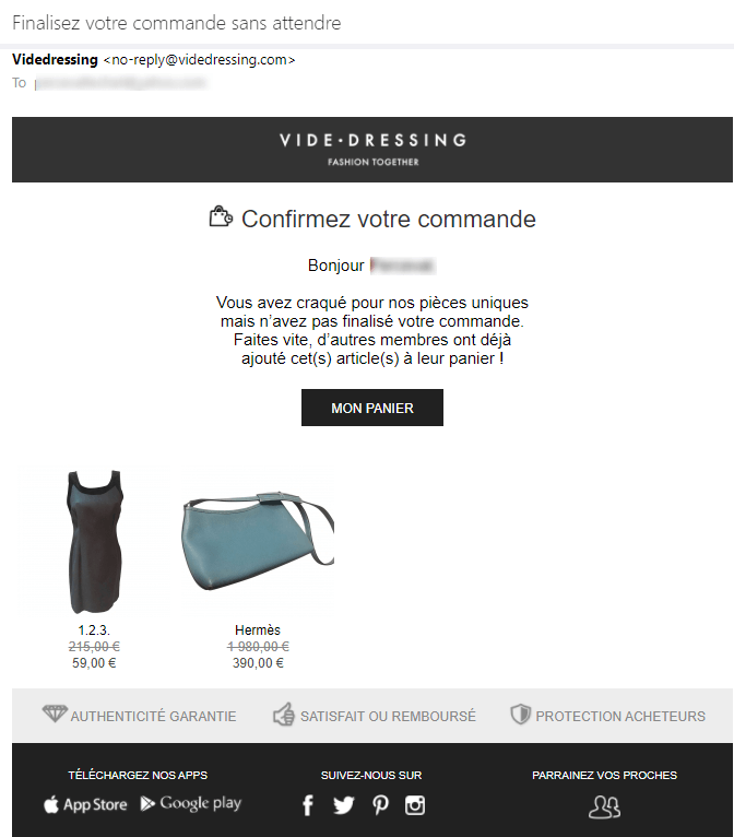 C’est par exemple un email destiné aux abonnés à la newsletter non encore clients, offrant la livraison gratuite pendant la première semaine des soldes.