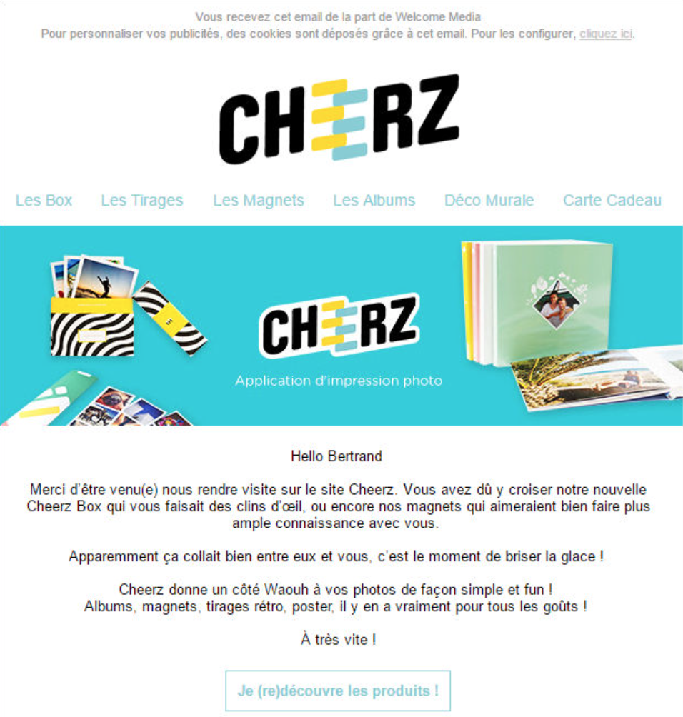 Voici un exemple de remarketing par email avec l’entreprise Cheerz.