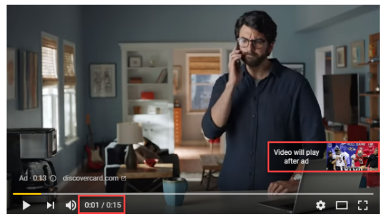 Ces publicités apparaissent également avant ou pendant les vidéos, mais les utilisateurs ne peuvent pas les ignorer. Elles peuvent durer jusqu'à 15 secondes. Les entreprises qui utilisent ce format paient pour 1 000 visionnages. Les publicités YouTube non désactivables contribuent à accroître la notoriété de la marque et ont des avantages considérables. CNBC rapporte que 76 % des consommateurs ignorent automatiquement les publicités, mais qu'ils doivent regarder ce format jusqu'à la fin, ce qui signifie que vous avez plus de chances de vous faire remarquer.